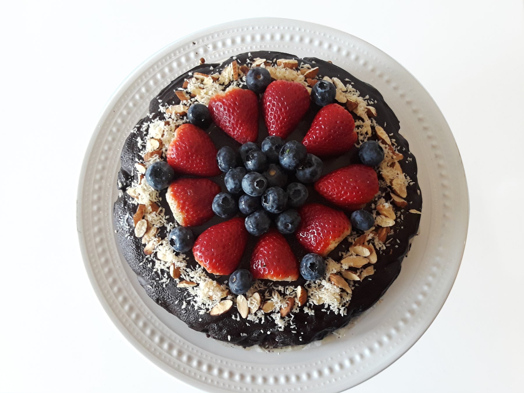Vegan Chocolate Cake 9"in with Fruit Topping
